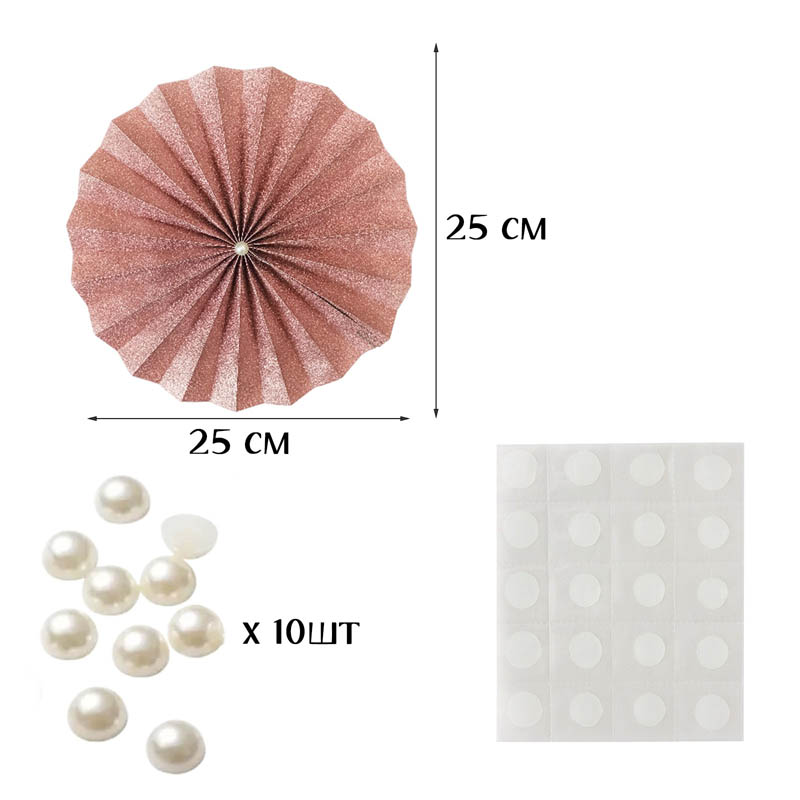 Фанты выполнены из двусторонней бумаги с устойчивым блестящим покрытием, похожим на глиттер. Главное преимущество материала в том, что он не осыпается и не шелушится, сохраняя безупречный вид до и после использования. С помощью прозрачных клейких точек бусины легко и надежно фиксируются в центре каждого фанта, позволяя собрать готовый декор за несколько минут.