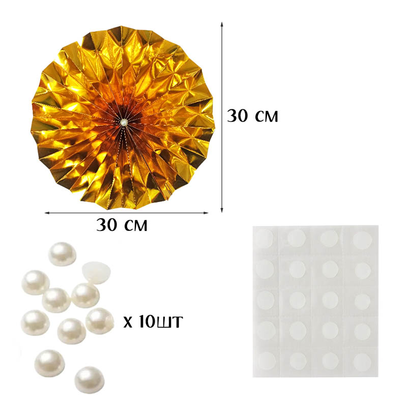 Фанты фольгированные с жемчужиной НАБОР 10шт х 30см, золото