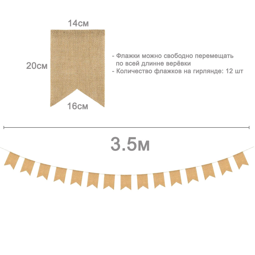Длина -  3,5 метра, флажки можно свободно перемещать во всей длинне верёвки.