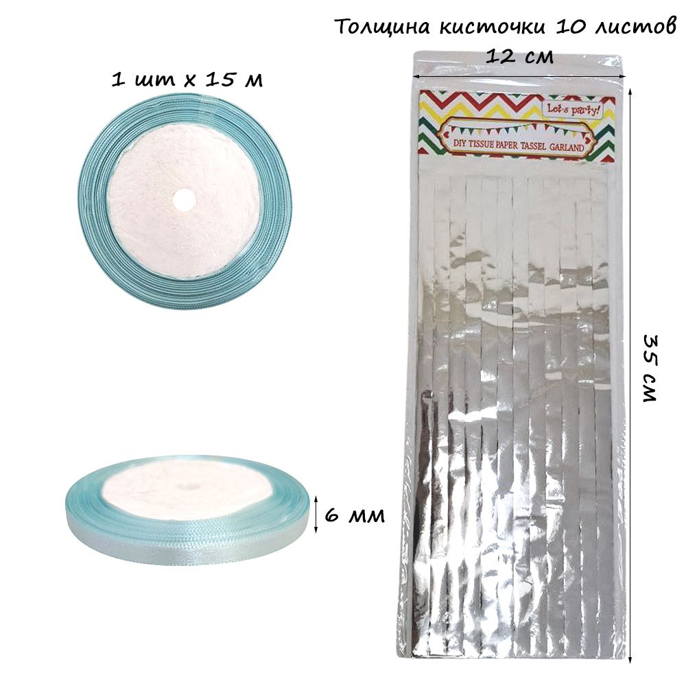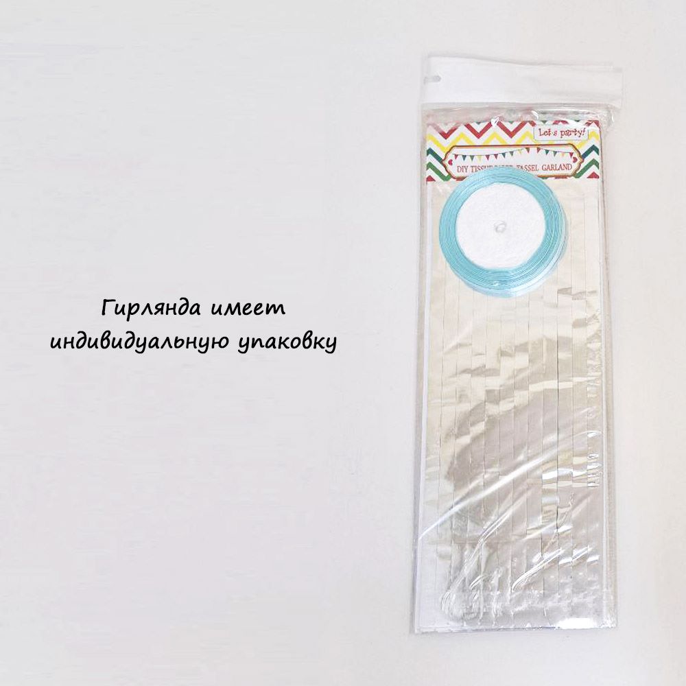 Гирлянда тассел 12 кисточек по 10 листов, фольга серебро