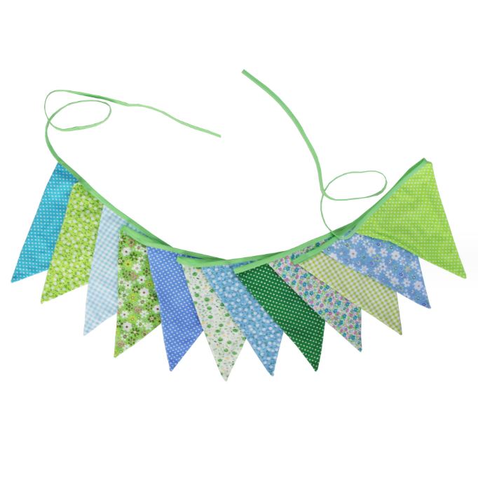 Гирлянда состоит из 12 флажков, расстояние между флажками 6 см, общая длина составляет 4 м.