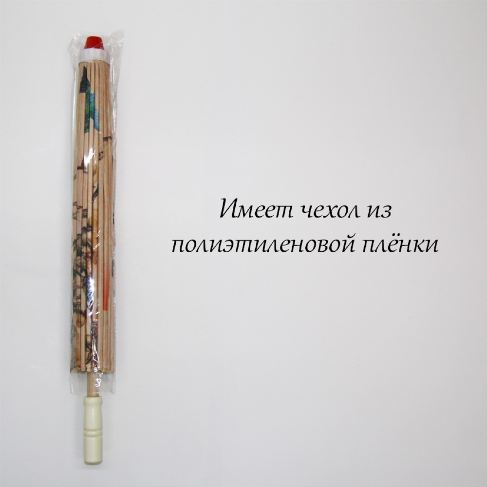 Каркас зонтика выполнен из дерева,купол зонта изготовлен из водоотталкивающего материала,который не пропускает воду.
