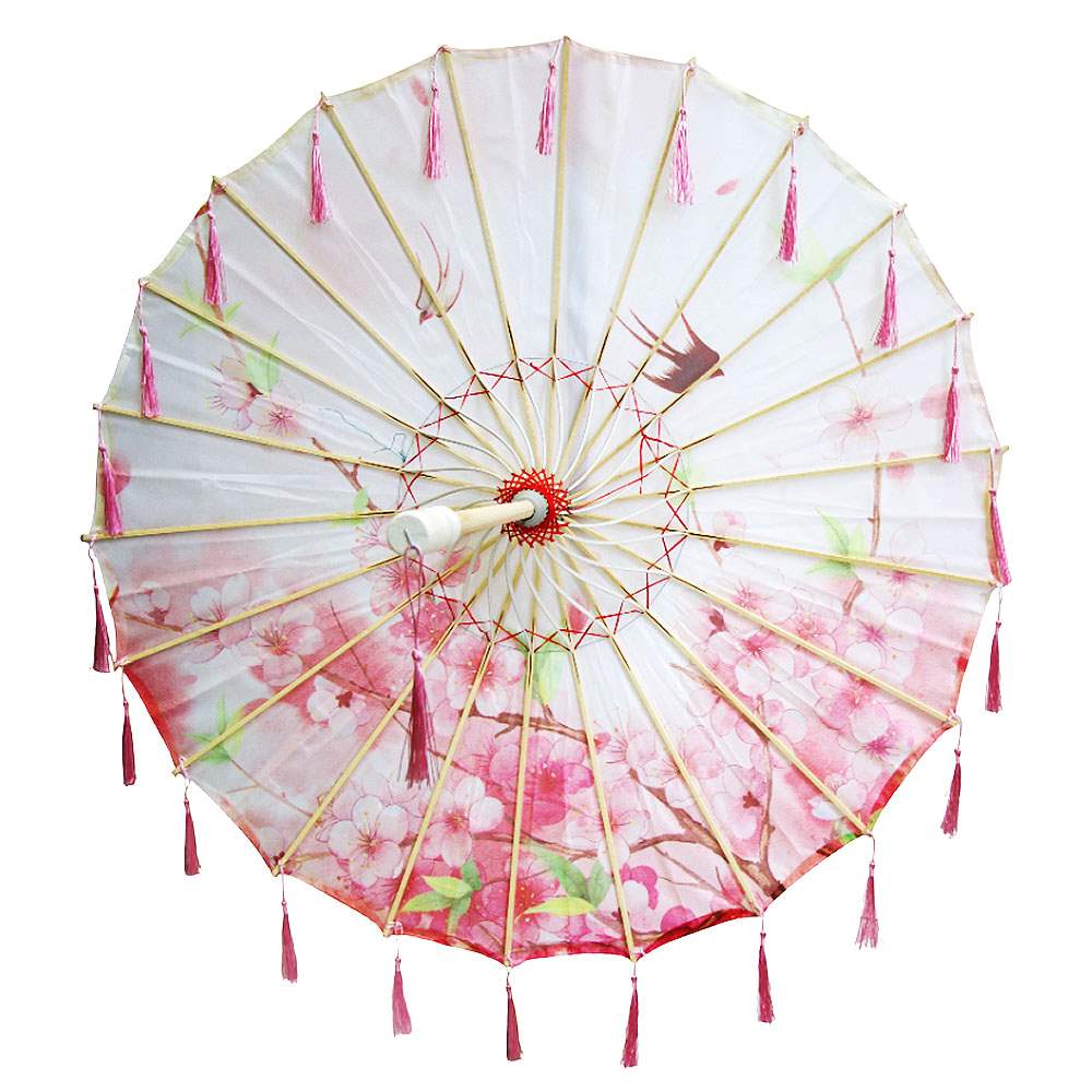 Китайские тканевые зонтики цветочные с кисточками 82х54 см