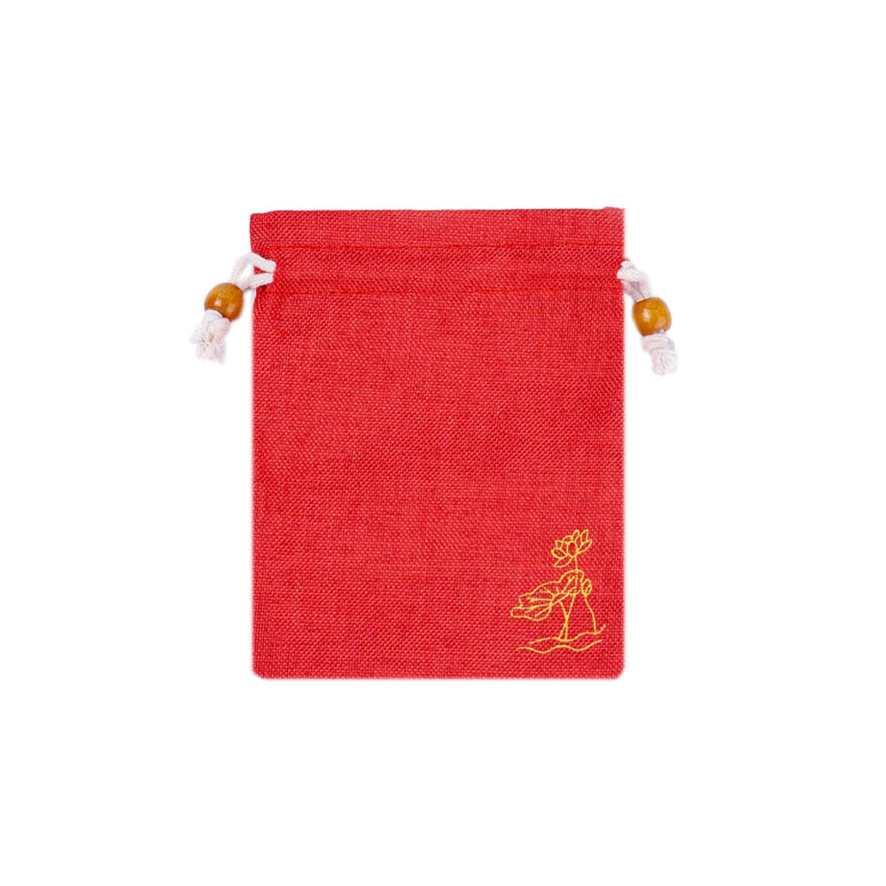 Мешочек из искусственного льна с орнаментом 15х12 см, красный