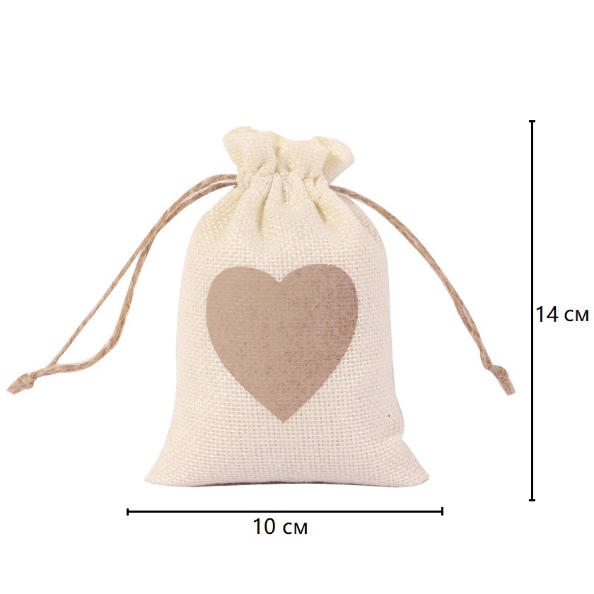 Стильный и оригинальный вариант для подарочной упаковки и хранения небольших предметов. Натуральная текстура мешковины придаёт изделию рустикальный, уютный вид, а сердечный мотив делает его особенно подходящим для подарков с душой.