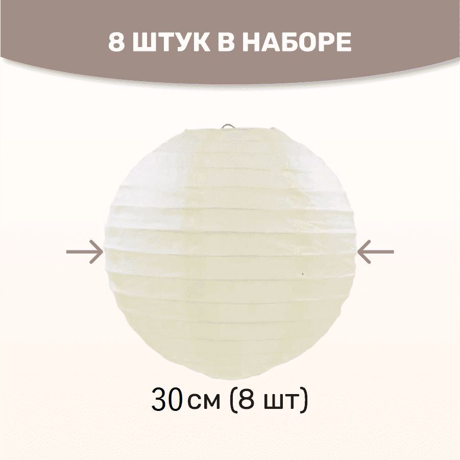 Комплект подвесные фонарики 30 см х 8 шт, айвори