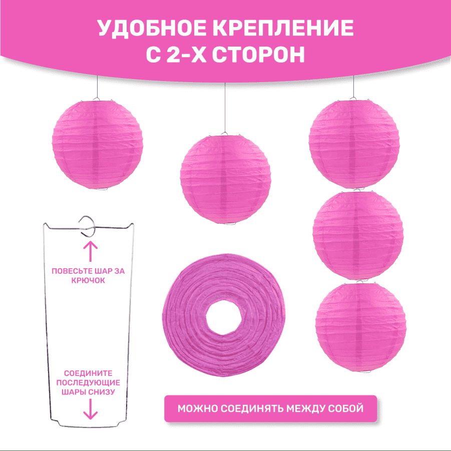 Комплект подвесные фонарики 30 см х 8 шт, малиновый