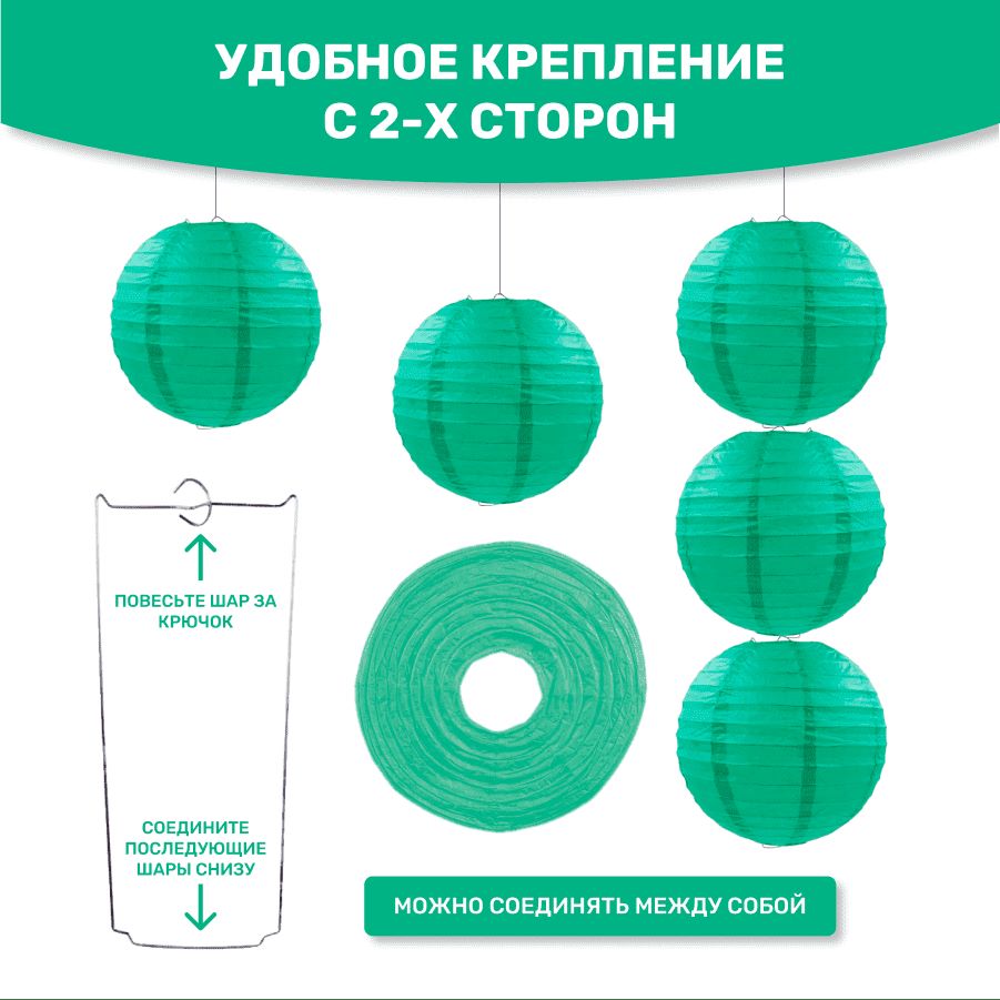 Комплект подвесные фонарики 35 см х 8 шт, изумрудный