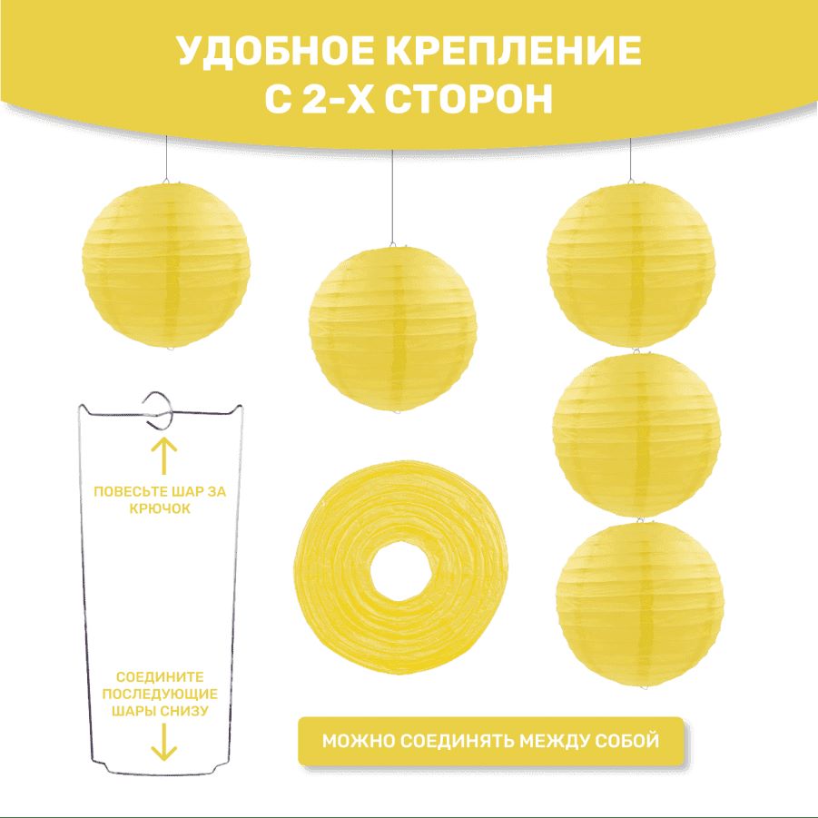 Комплект подвесные фонарики 35 см х 8 шт, желтый