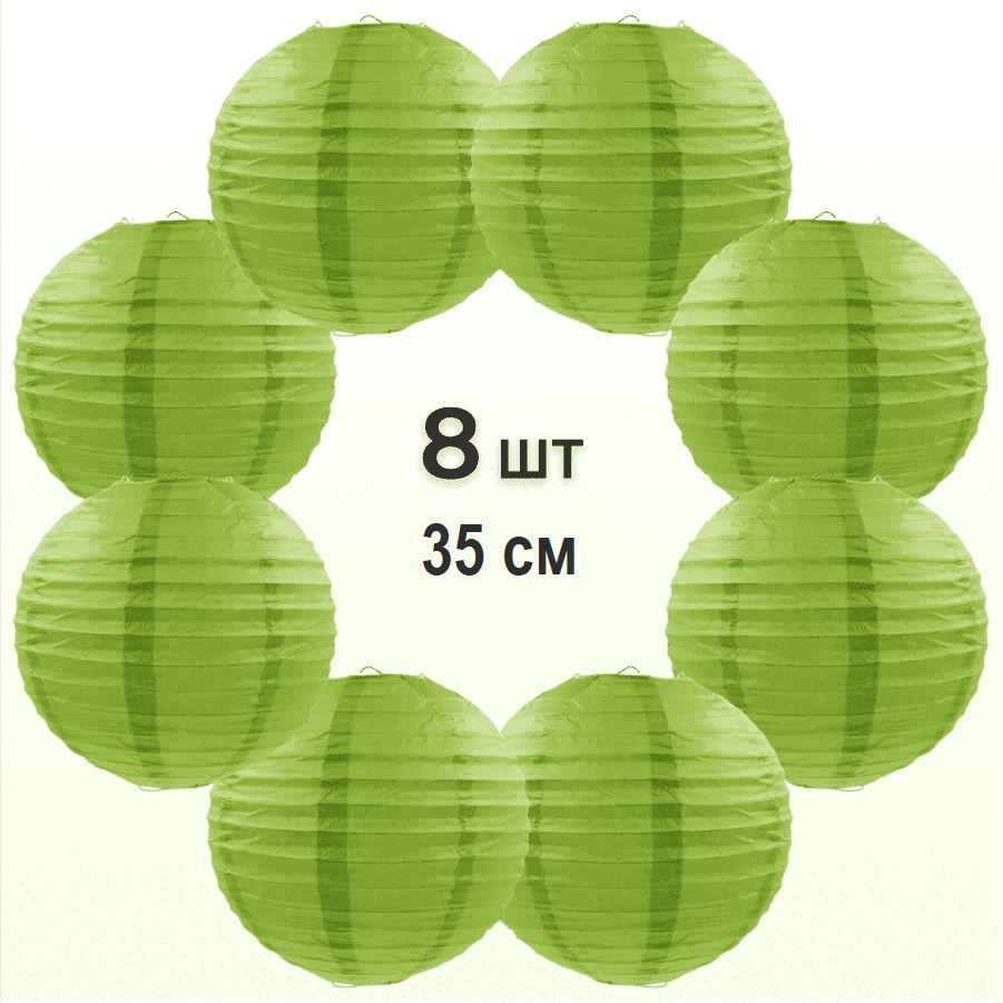 Комплект подвесные фонарики 35 см х 8 шт, темно-салатовый