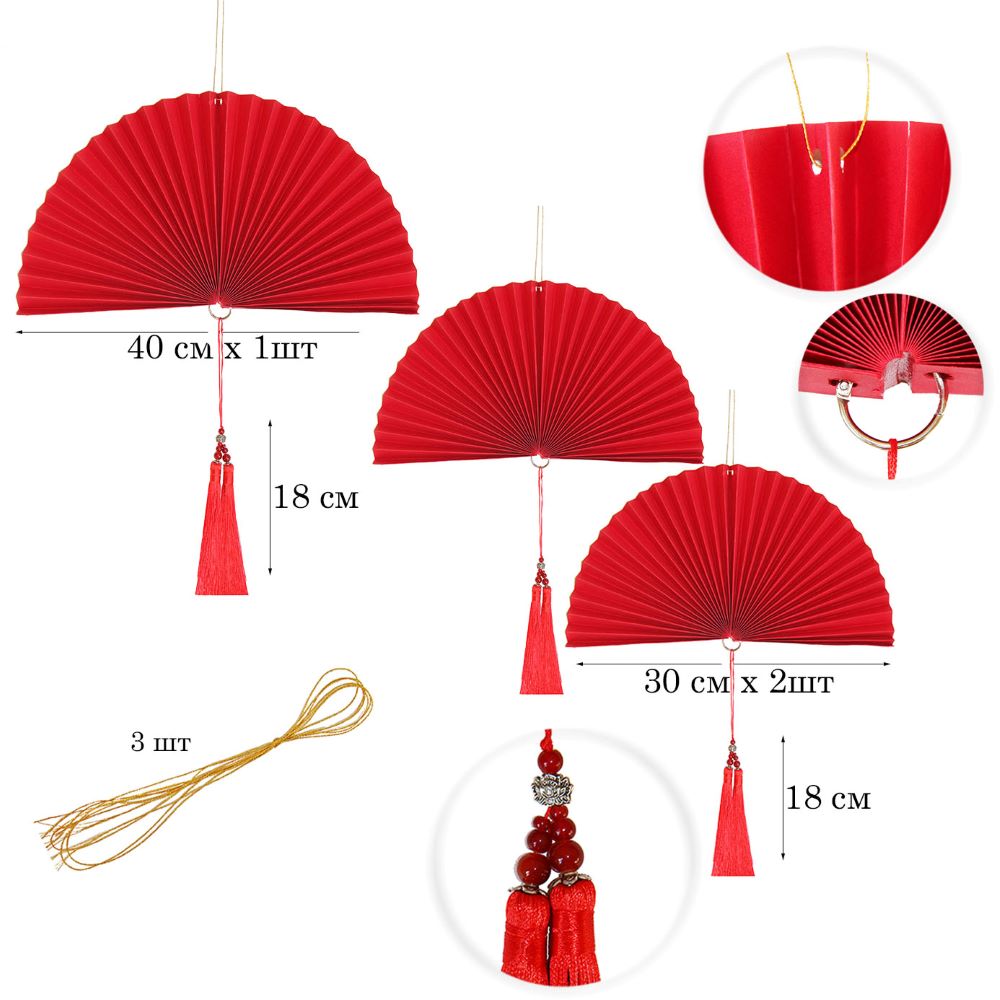 Набор украшений для праздника №72 включает пять шаров-сот и три веера-гармошки.