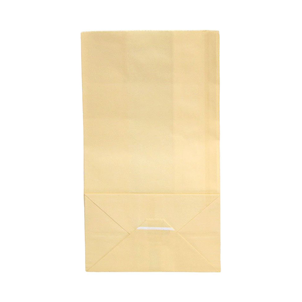 Подарочный пакет из крафтовой бумаги пастельного оттенка с белыми бумажными ручками и белой внутренней стороной.