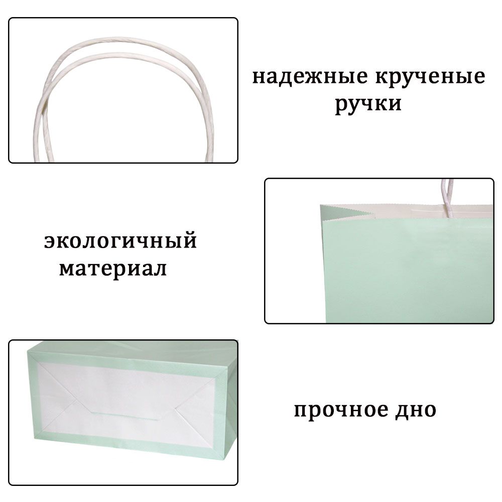 Подарочный пакет из крафтовой бумаги пастельного оттенка с белыми бумажными ручками и белой внутренней стороной.