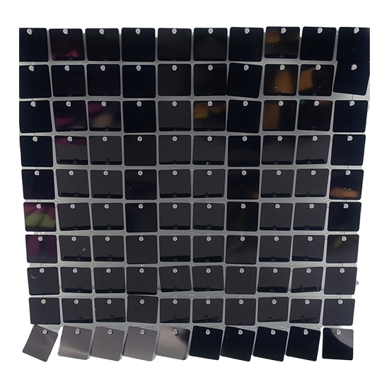 Панель с пайетками 30×30 см на гибкой пластиковой основе. Пластик прочный, хорошо гнётся и не ломается при сгибании. Пайетки переливаются при движении. Панель крепится к стенам, каркасам или соединяется с другими такими же панелями.