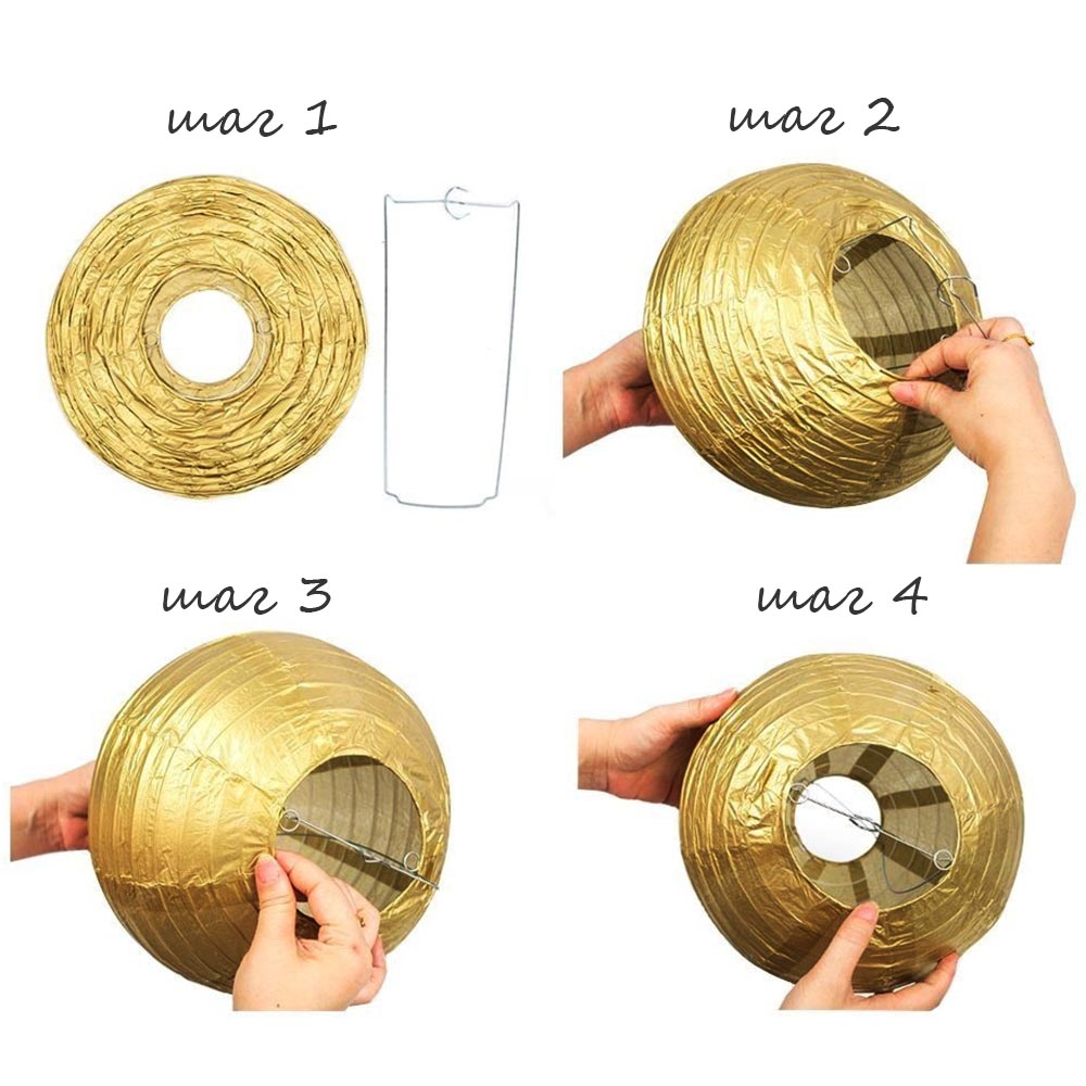Цвет шара — золото, особенно эффектно смотрится в вечернее время, когда внутри фонарика светится лампочка.