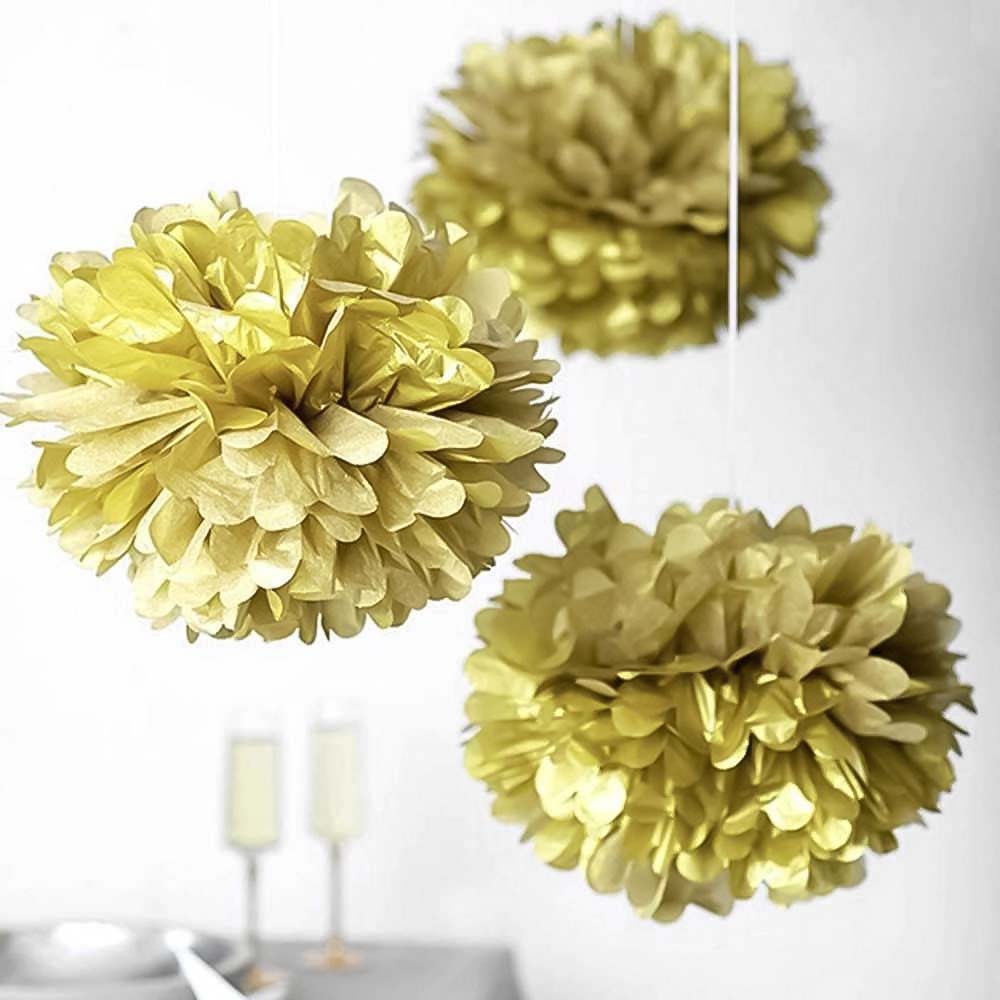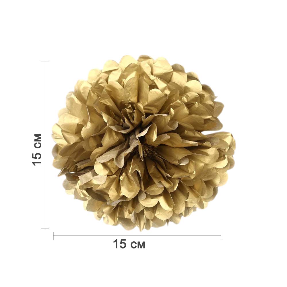 Золотой бумажный помпон диаметром 15 см — стильное и лёгкое украшение для праздников, фотозон, витрин и интерьера. Отлично подойдёт для дней рождений, свадеб, вечеринок и тематических мероприятий.