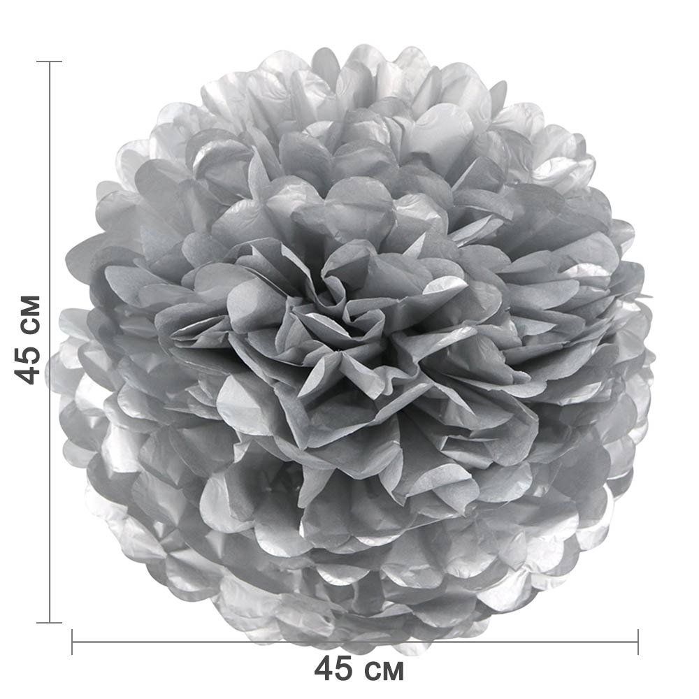 Помпон из бумаги 45 см серебро