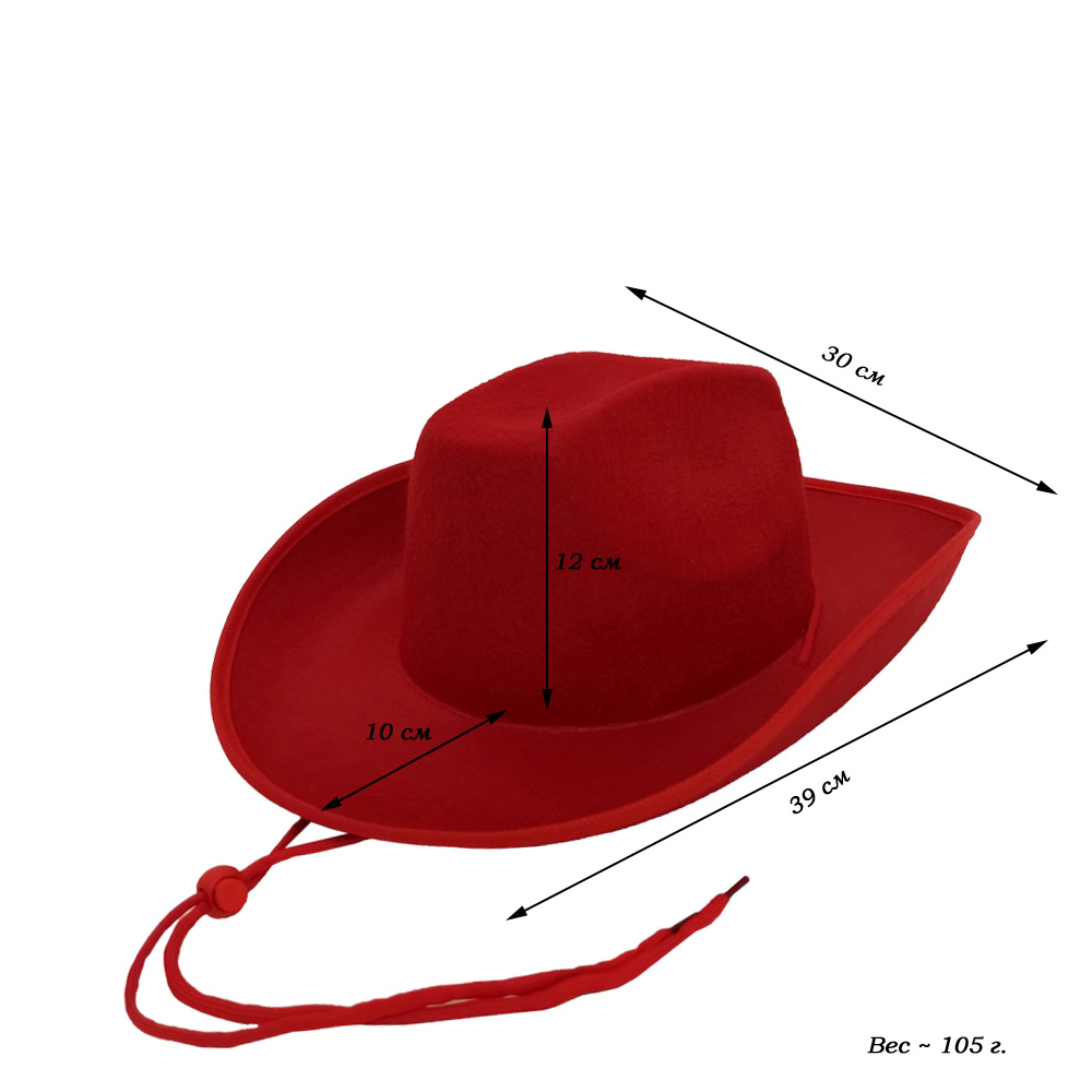 Шляпа ковбойская, красный - 1 шт.