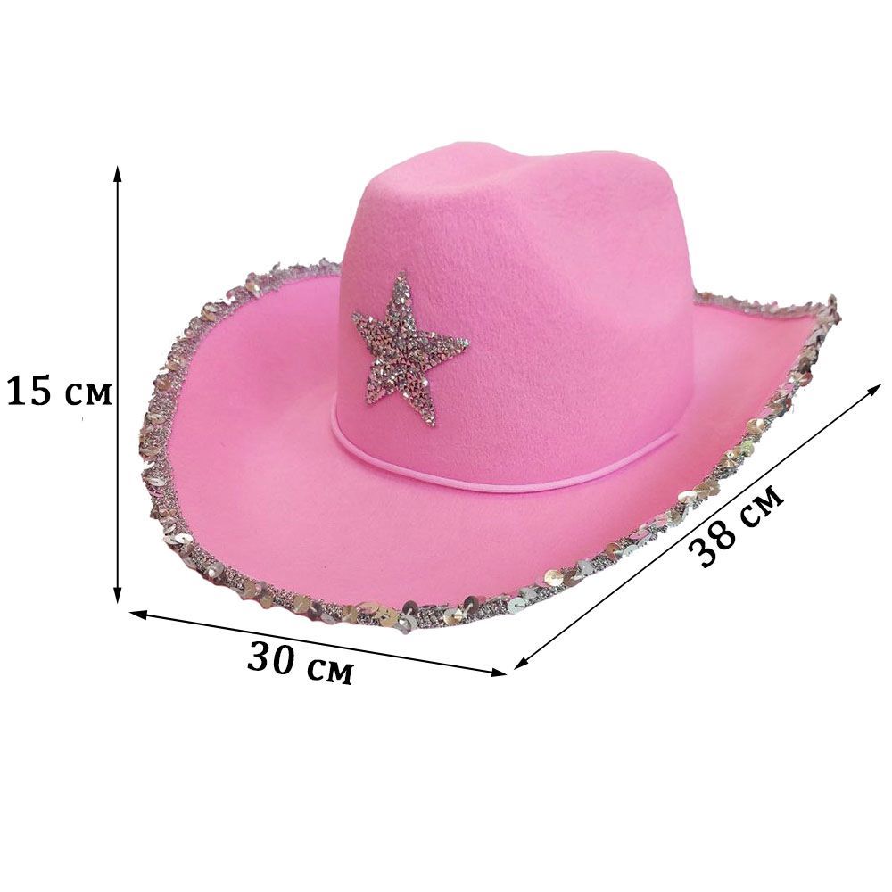 Шляпа ковбойская с блестками и звездой, розовый