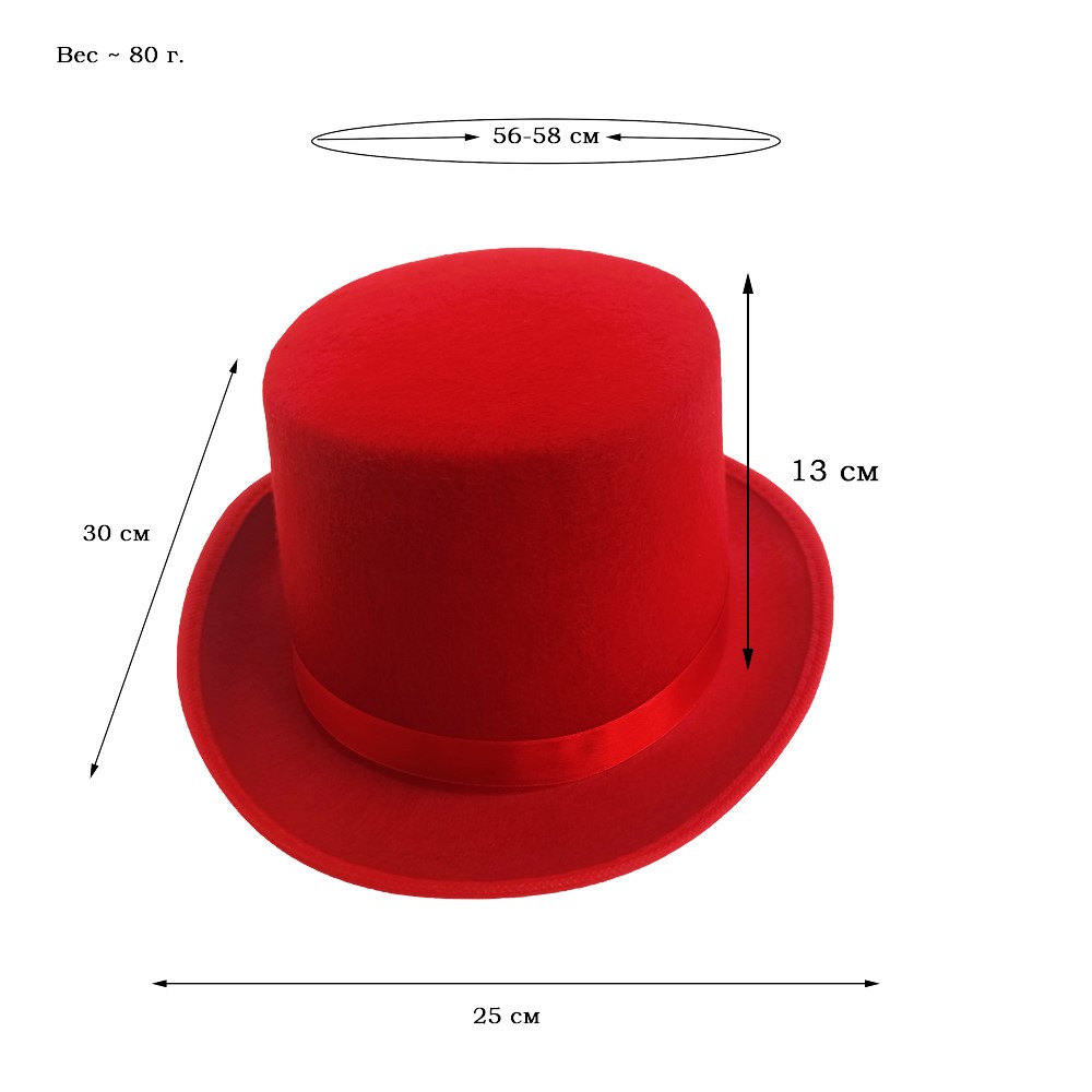 Шляпа Цилиндр, красный