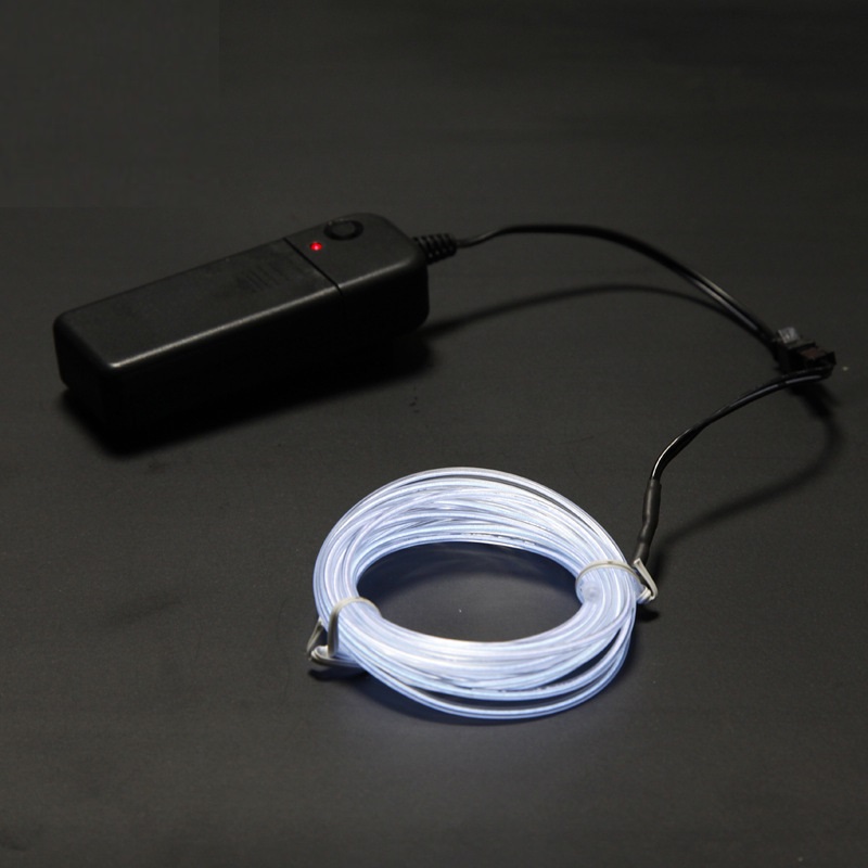 В комплекте с EL проводом, длинной 4 метра,  идет бокс с питанием от батареек, что позволяет его применять где угодно, даже на улице.  Работает от 2-х батареек 2АА (батареек в комплекте нет).