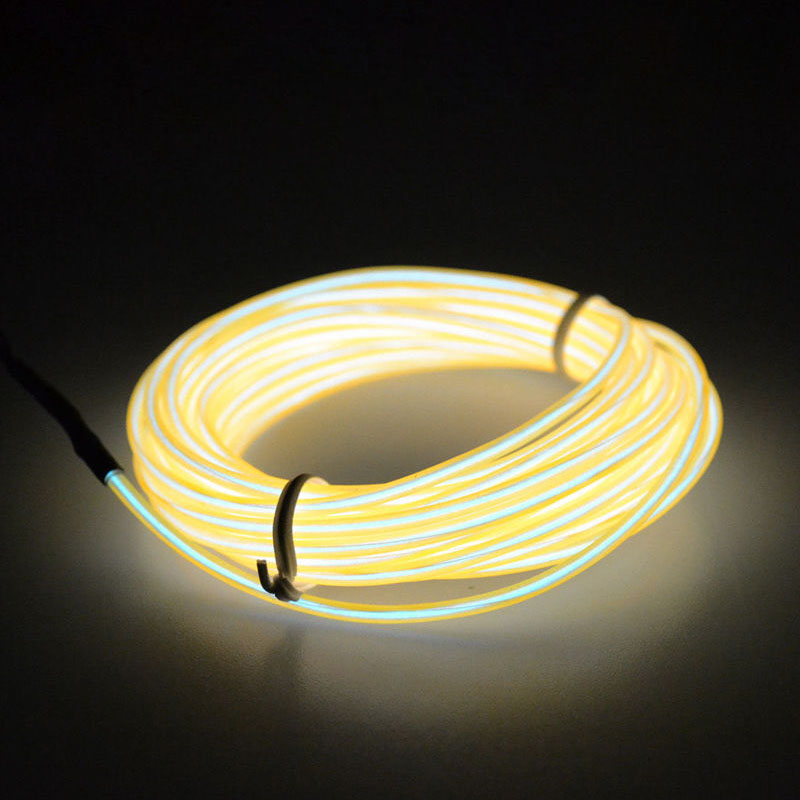 Шнур неоновый светящийся, желтый. Можно применять для праздничного украшения интерьера, а также для декора танцевальных костюмов, новогодней елки, подарков, игрушек.