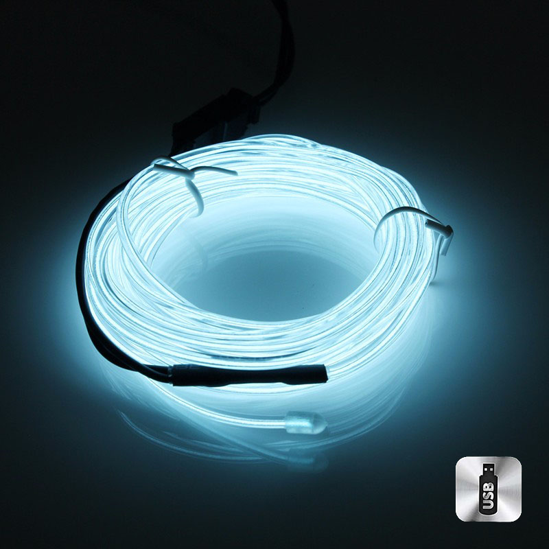 Шнур неоновый светящийся от USB 5 м, светло-розовый