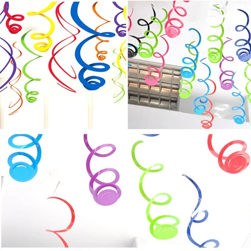 В комплекте 6 шт, каждая спираль снабжена петлей для крепления к потолку или стене.