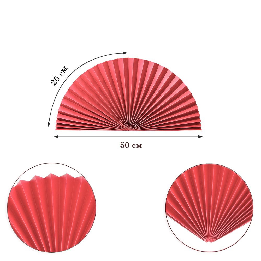 Веер-гармошка 160г/м 50 см, алый