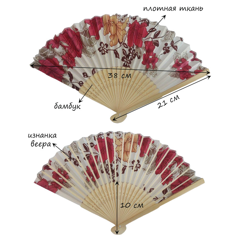 Веер с цветочным узором 38х21 см, №11