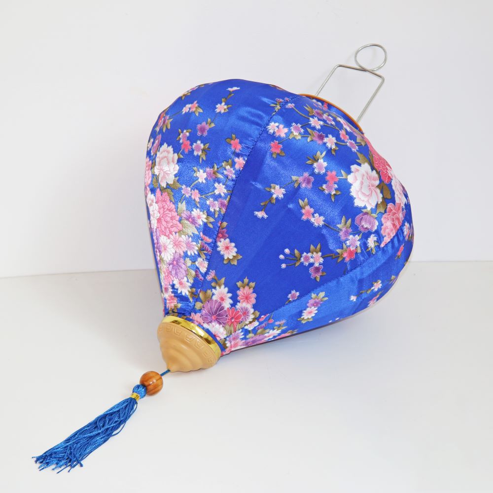 Это традиционные подвесные фонарики ручной работы, изготовленные из шелкового материала с элегантным цветочным узором, которые делают его изысканным и красивым.