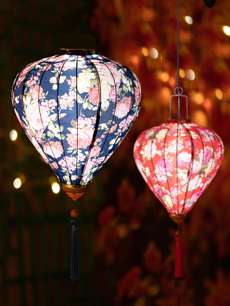 Это традиционные подвесные фонарики ручной работы, изготовленные из шелкового материала с элегантным цветочным узором, которые делают его изысканным и красивым.
