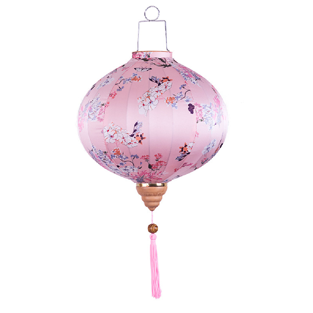 Коллекция подвесных фонарей ручной работы. Конструкция из шелкового полотна с цветочным орнаментом, металлического каркаса и подвесной системы. Модель в розовой цветовой гамме.