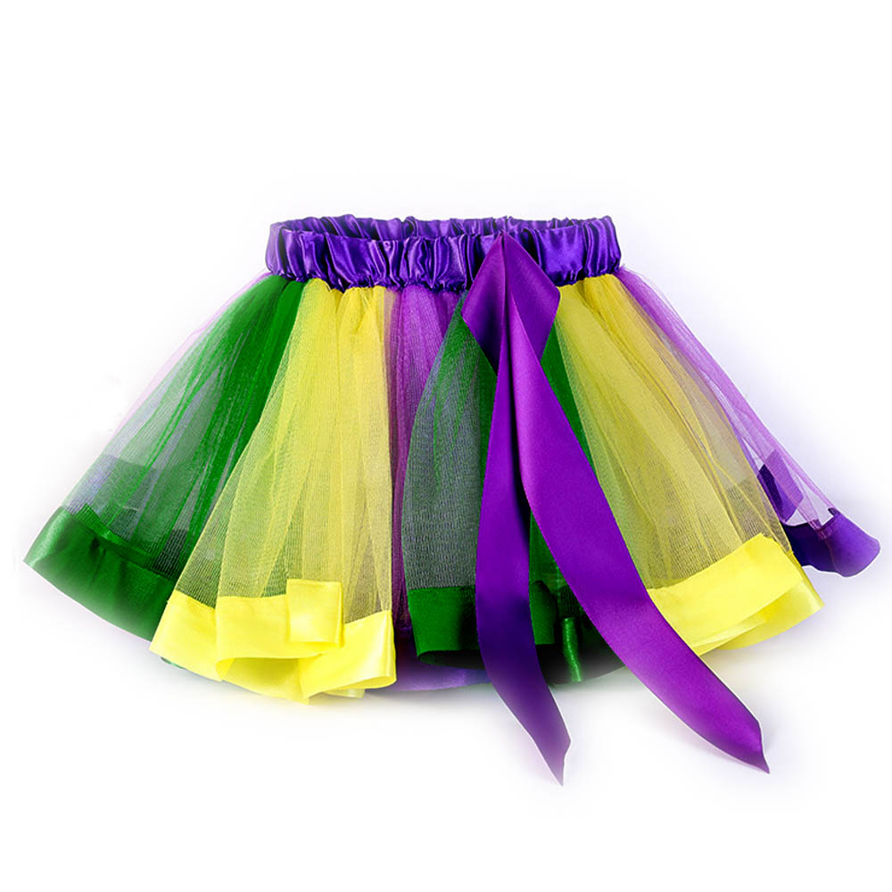 Юбка-пачка детская 30 см зеленый+лимонный+фиолетовый №15