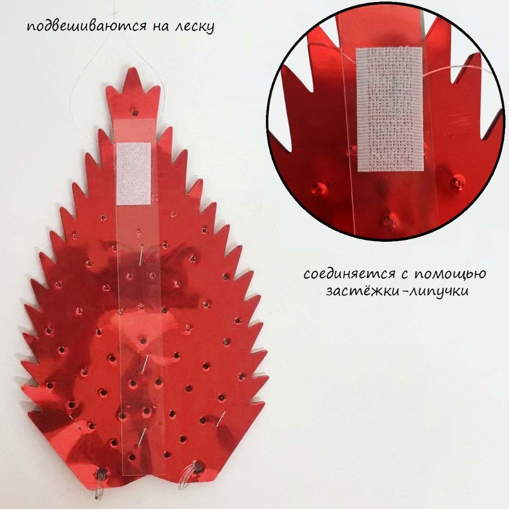 Поставляется в сложенном виде - просто расправьте и зафиксируйте форму с помощью самоклеющейся застёжки-липучки (можно использовать неоднократно). Подвешивается на встроенную петельку из лески.