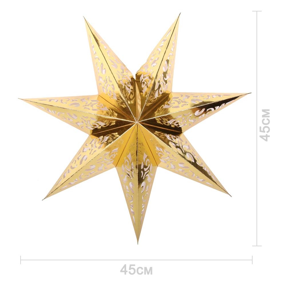 Звезда семиконечная бумажная 45 см Вензель, золото
